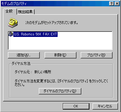 「マイコンピュータ」→「コントロールパネル」→「モデム」を開きます。