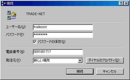 また、フレッツISDNの場合ユーザ名はtradezzzz@c.tradewind.or.jpとい形になります。