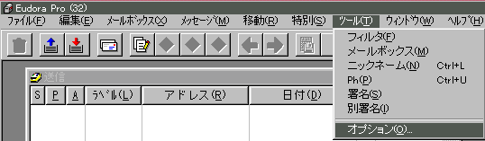 ・【ツール】 → 【オプション】を選択しオプション画面を表示します。