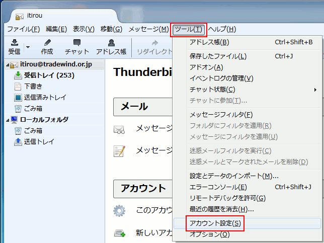 @サーバ名に pop. を追加し pop.tradewind.or.jp のように設定します。