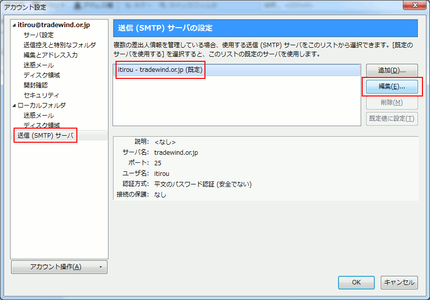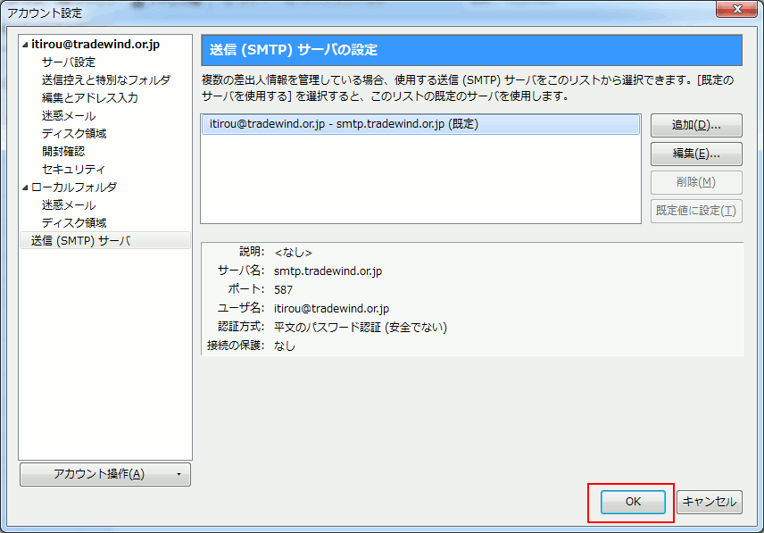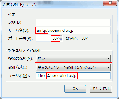 @サーバ名にsmtp. を追加し smtp.tradewind.or.jp のように設定します。