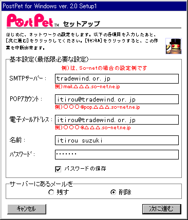 ・【POPアカウント】は itirou@tradewind.or.jp と入力します。itirou