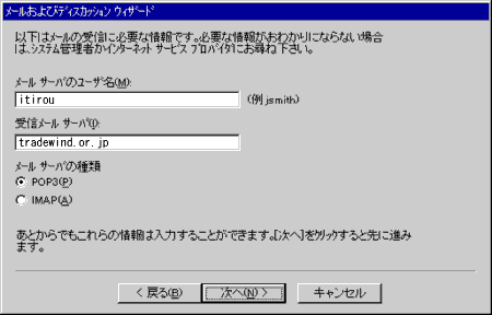 [受信メールサーバ]   :tradewind.or.jpのように入力します。