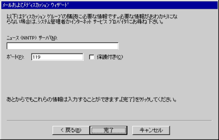 [メールサーバのユーザ名]:メールアカウントを入力します。