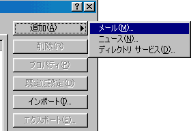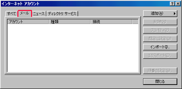 1. Outlook Expressを起動し、[ツール]メニューから[アカウント]を選択し、[メール]