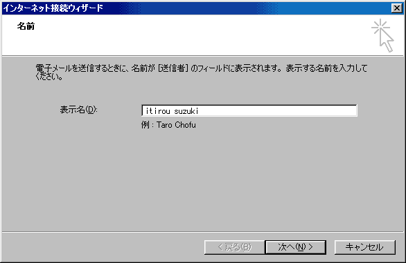 メールが届いたときに相手のメールソフトに表示される名前になります。[次へ]