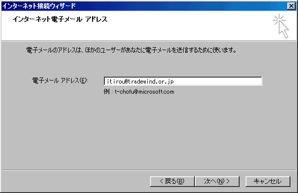 4.「電子メールアドレス(E)」にメールアドレスを入力して[次へ]をクリックします。